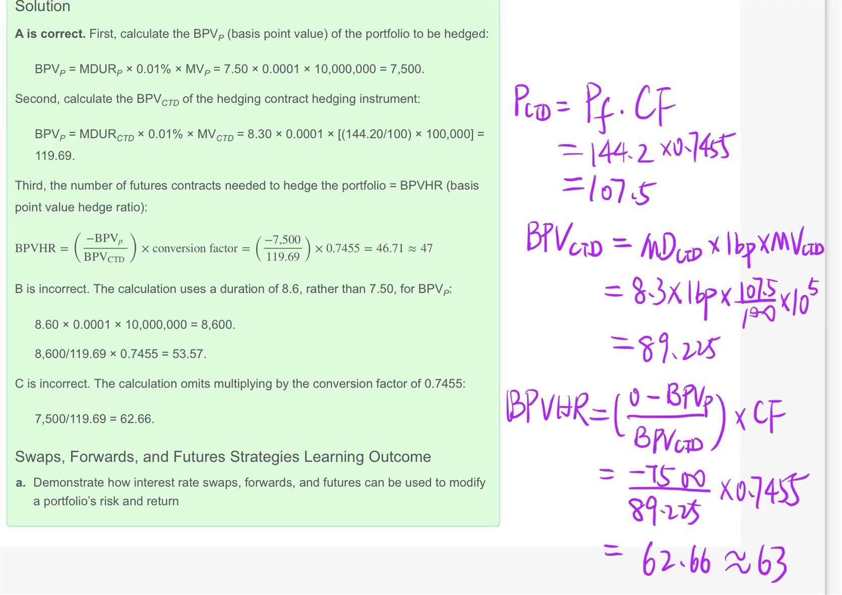 同学你好,标准期货的duration应该和CTD的duration是一样的。因为标准期货最终交割的是CTD债券,因此它的价格对利率的敏感度反映的是CTD的价格敏感度,即Df = D_CTD。