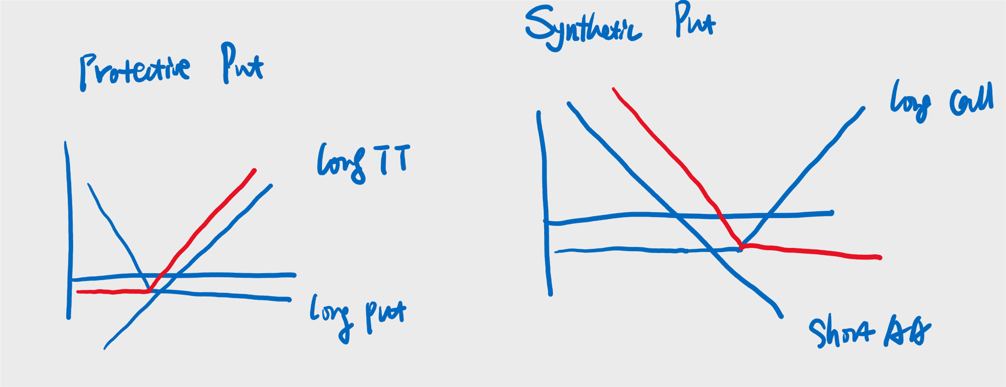 同学你好,这题问哪个衍生品的头寸能最好的解决IC关于涉及到AA和TT两家公司的event-driven策略的担忧。IC担心的是收购不成功,那么这个event-driven策略就会产生较大的损失。event-driven策略为long TT和short AA,如果策略不成功,TT股价会下跌,而AA股价会上涨。因此,我们要对冲的是TT多头和AA空头的风险,对冲TT多头就要long put,构成protective put,TT下跌风险被对冲;对冲AA的空头头寸,就可以long call,这样short S+long call就构成了sythetic long put,AA上行风险被对冲。选B