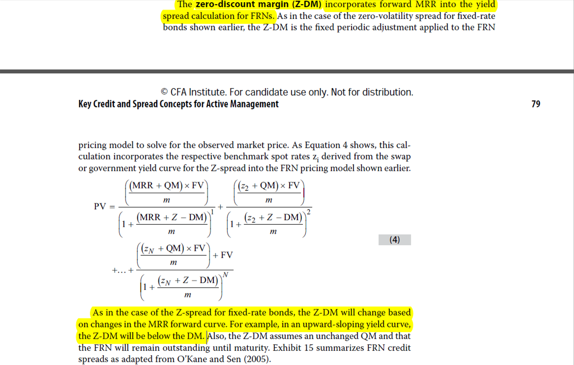 老师你好,讲义上说Discount rate=Spot MRR+Z-DM,所以当总体利率不变时,即期利率越大小,Z-DM越大吧?老师为什么说是远期参考利率?