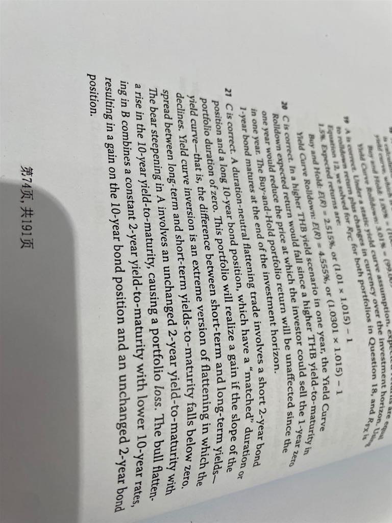 那么Bear必然是损失,虽然Bull是利得,但是C选项的收益率曲线反转情况下,长期利率下降更多,收益更大。