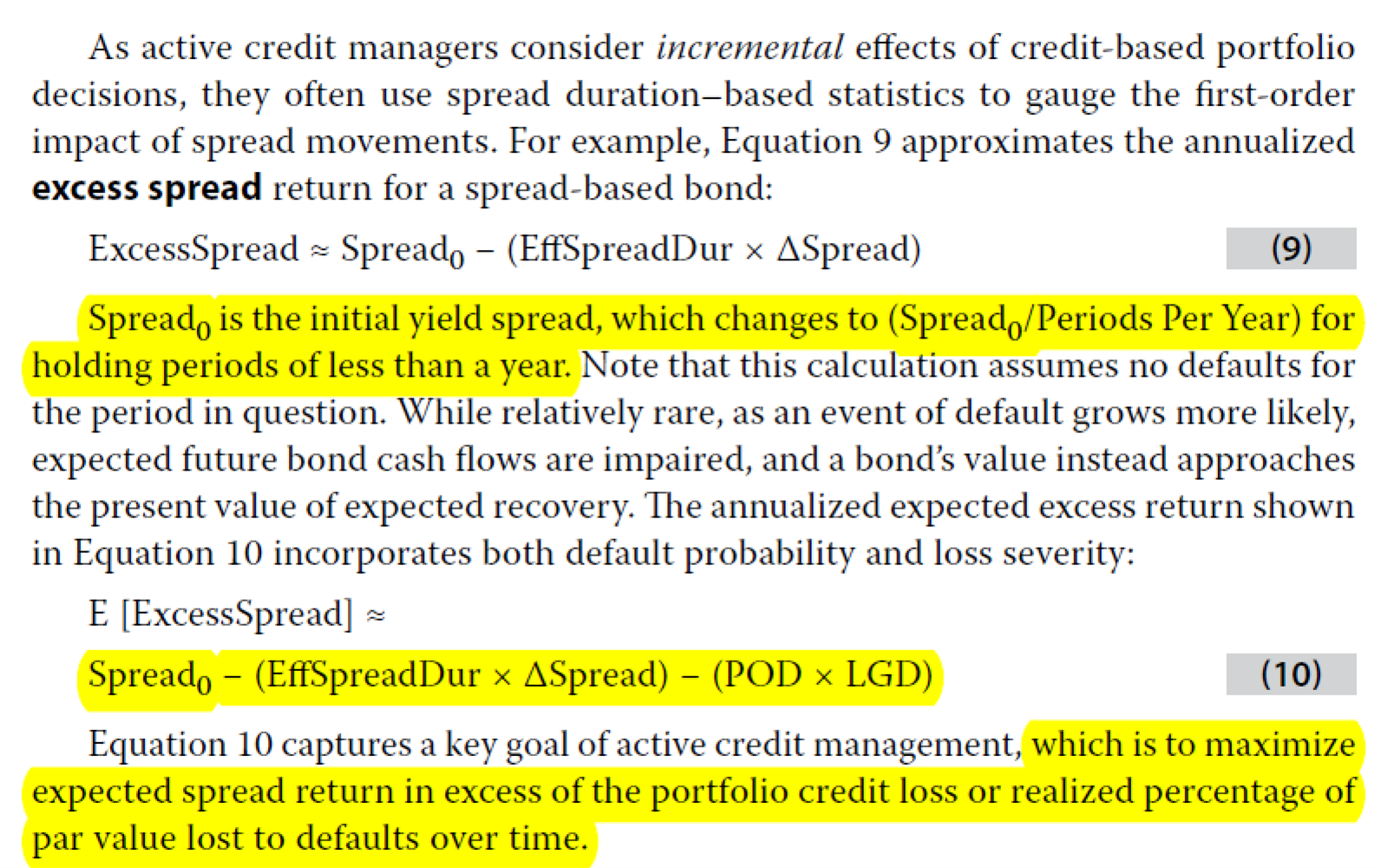 关于Expected excess spread return的问题,我们看到原版书中的描述仅在第一项考虑时间因素,第三项是不考虑的,如图。