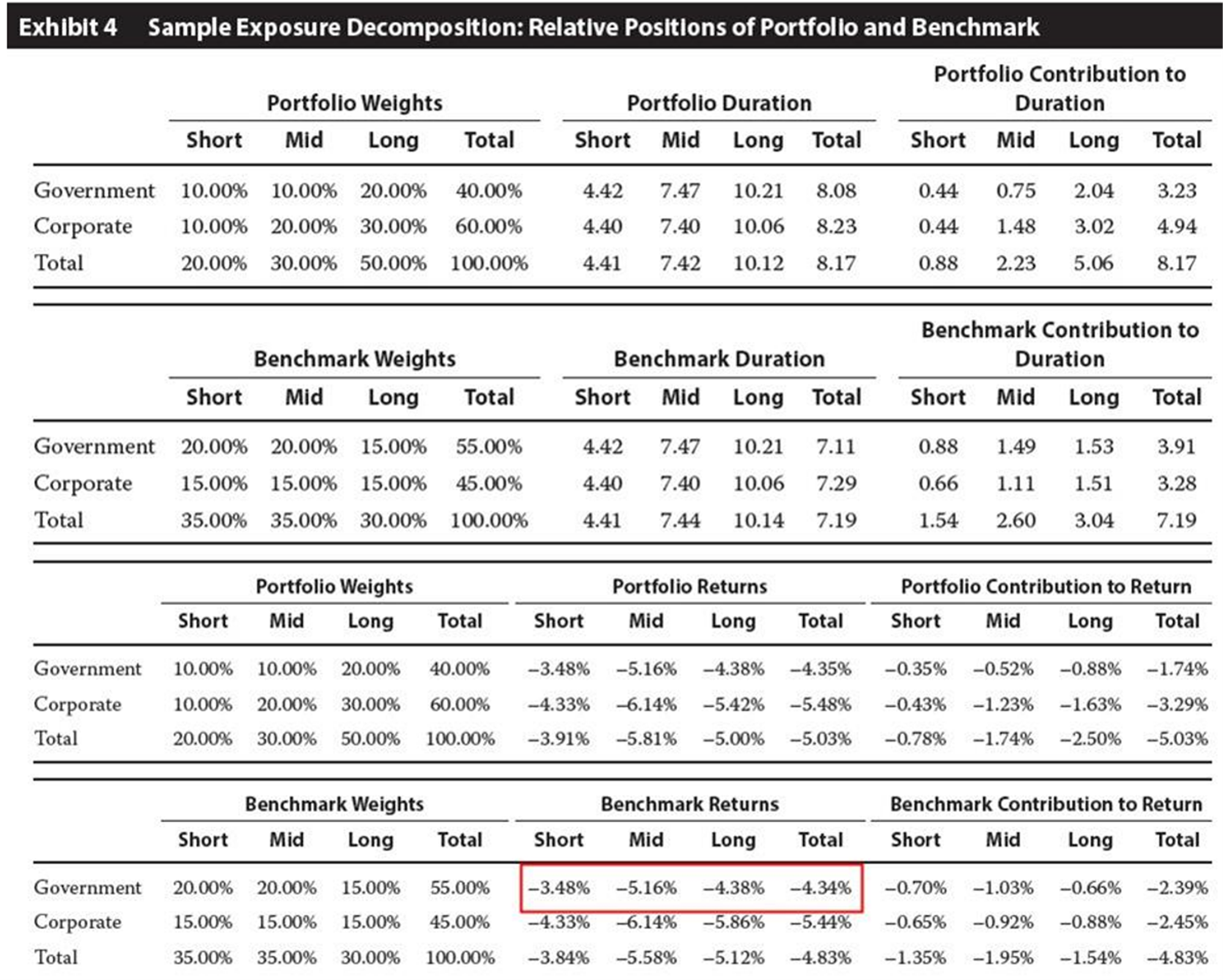 同学你好,这里应该是有些问题的。根据exhibit4,我们可以发现benchmark在所有duration段的return都是负的,表明各期限的利率都是上行的。