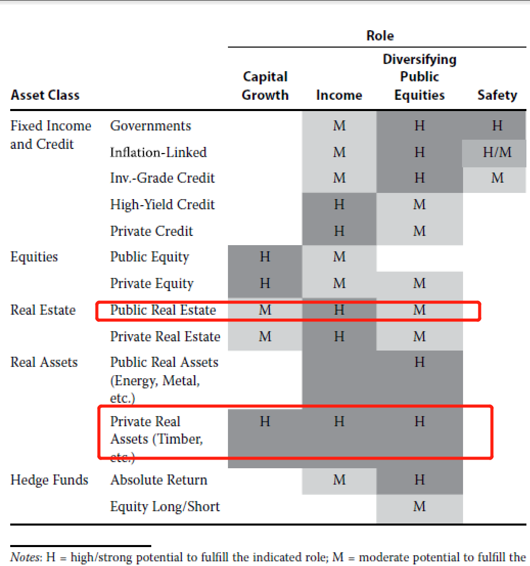 public real estate在这两项上的效果都是M(中等),而real asset是H(高).