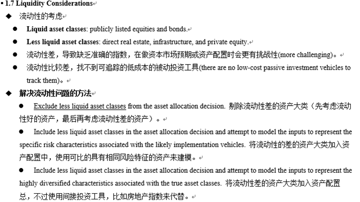 同学你好,可以看下方冲刺笔记的截图,可以得知流动性较差的资产大类内部的标的资产很难达到分散化,而且缺乏准确的指数,那么A和B说法都不正确。对于这些流动性差的资产大类,可以使用其他类似的但是流动性较好的资产进行替代,比如使用REITs来替代房地产进行投资,不过两者虽然都与房地产相关,可是REITs与房地产依旧有着巨大的差异,也就是C选项所表达的意思,你买一个基金和买一栋房子完全不是一回事。