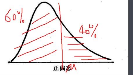 同学你好,但这句话的意思说,收益小于均值的比例不能大于60%。如果正好是负60%正40%,图形应该如下,那么应该是正偏。