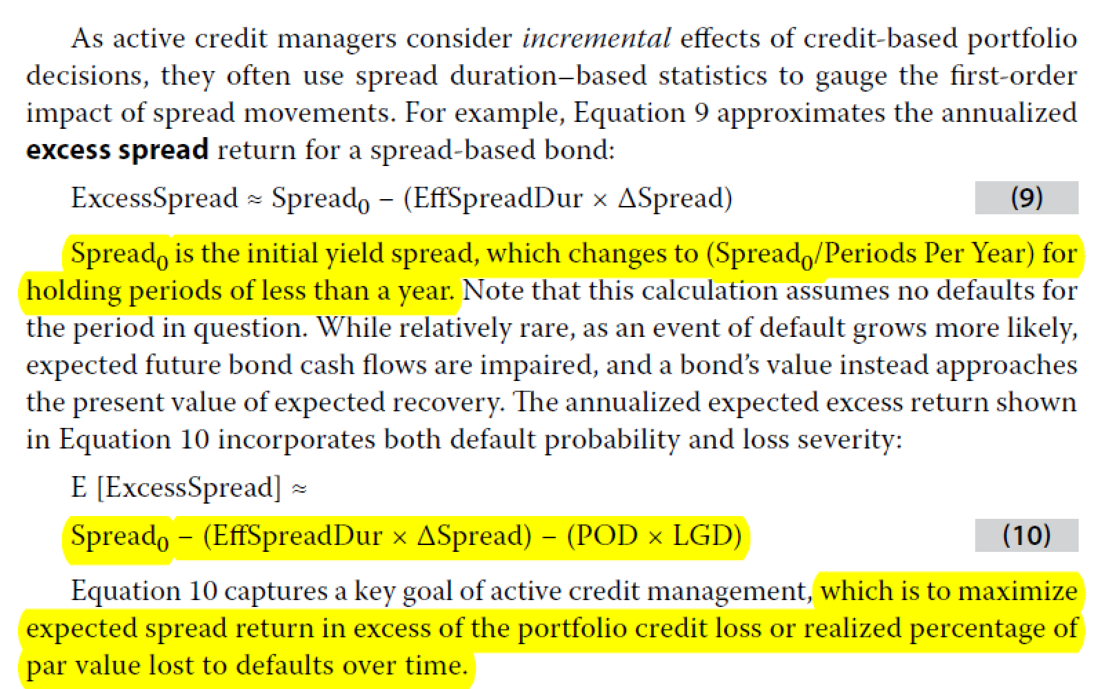 确认了。我的答案是基于原版书对此问题的描述,即只在第一项考虑时间问题,而在第三项是不考虑的,另外需要区分Expected excess spread return和Excess spread return,两者的公式也是不同的。
