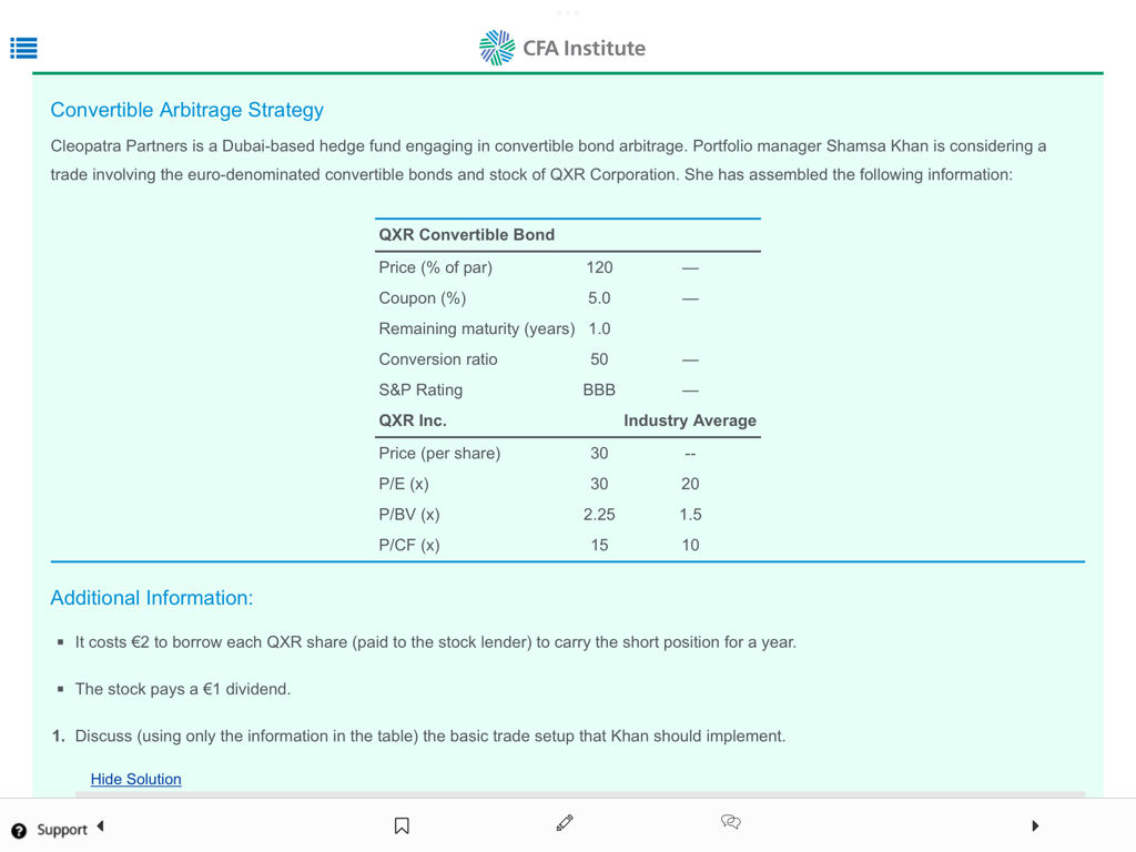 convertible bond strategy里面Example7 solution 2 为什么short stock 收益是-6?