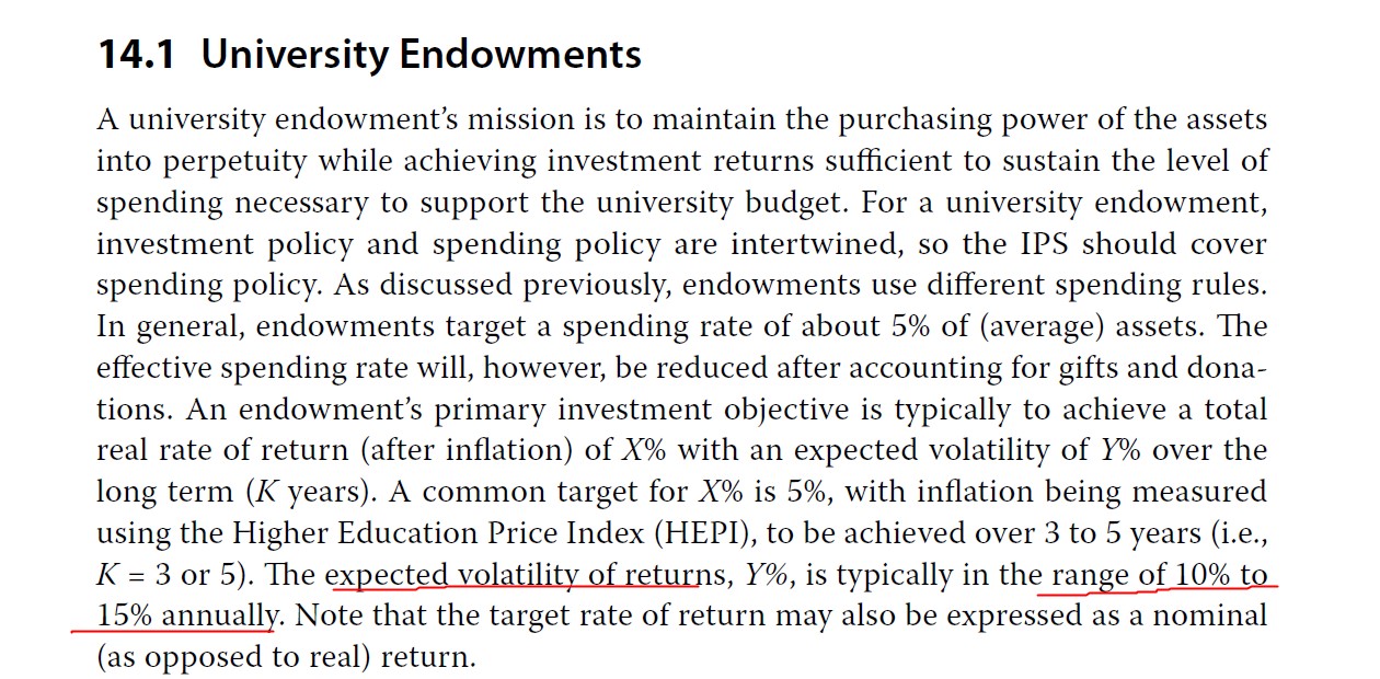 原版书的正文当中有表述,一般来说endowment的年波动不超过10%-15%。在原版书P54页,您可以看一下。