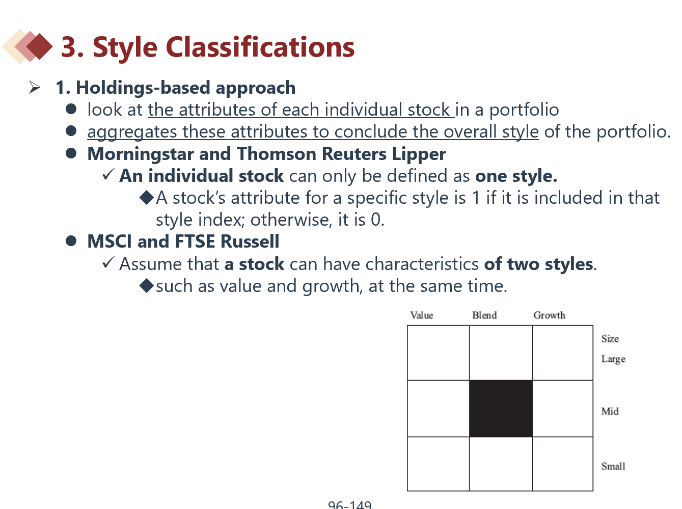 同学你好,Thomson Reuters Lipper是另外一种风格分类方法,在style classification部分提过,但没有重点讲,因为法原版书也没有介绍,对于风格的确定算法上可能会有所不同,但不要求掌握。这边要掌握的是