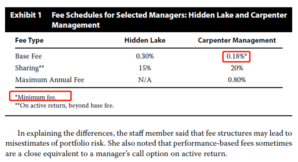 而Hidden lake的base fee没说明是minimum fee,那么不管是正的active return还是负的active return 它都要以15%的比例进行分享,因此它的费率结构是对称的,而不是像一个call。
