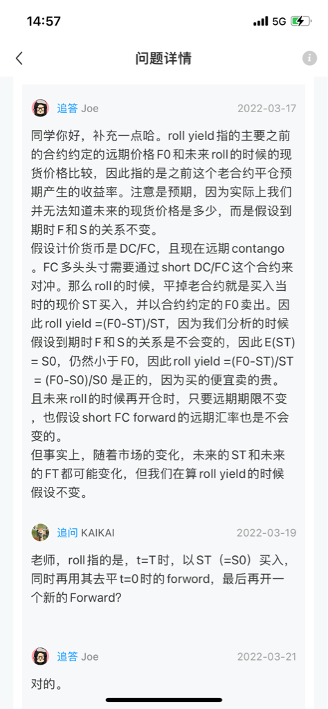 老师,KAIKAI老师好像确是提到了在考虑roll yield(正或负)时,假设So=ST