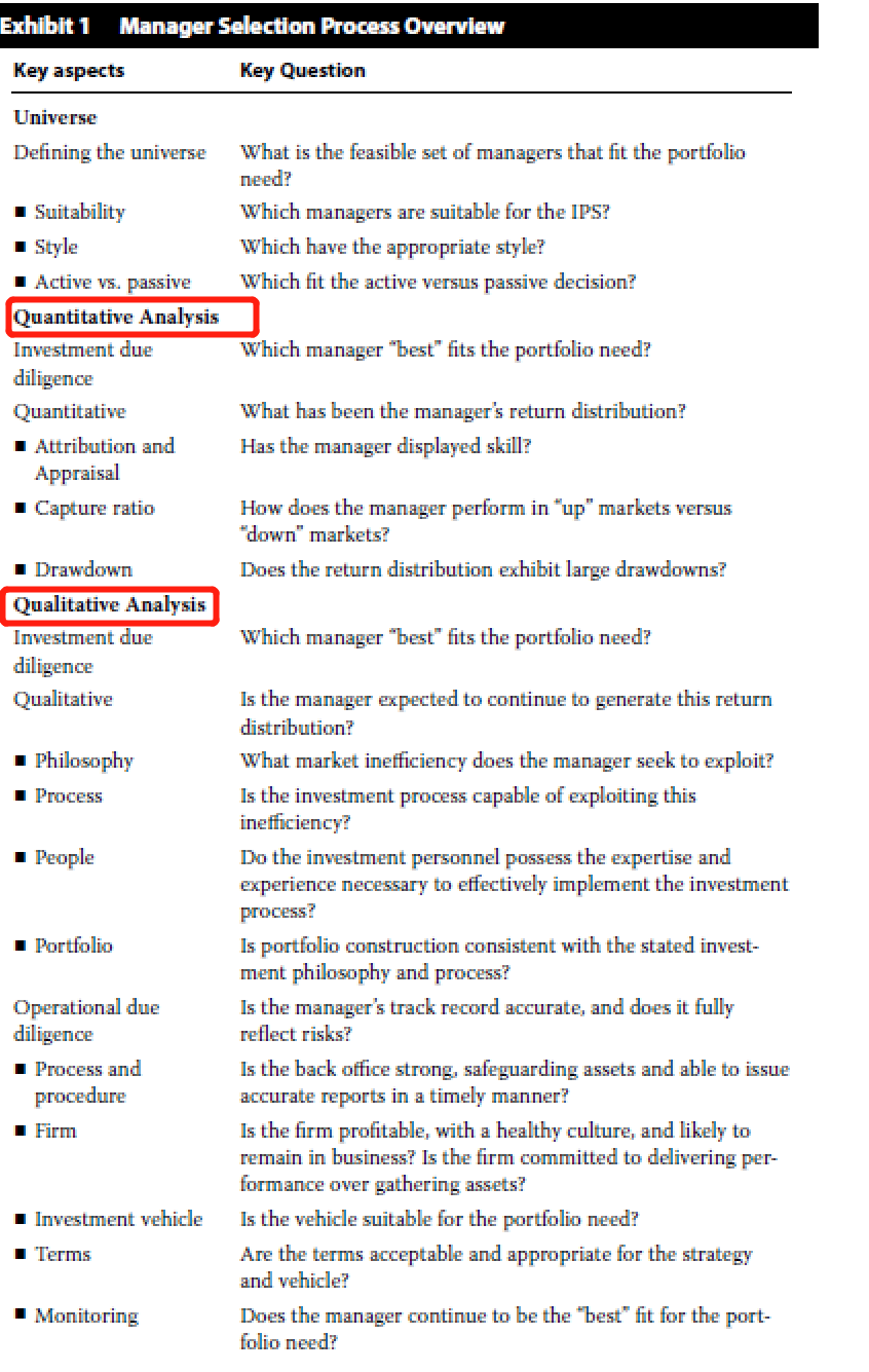 定性方面分为Investment due diligence和Operational due diligence两部分