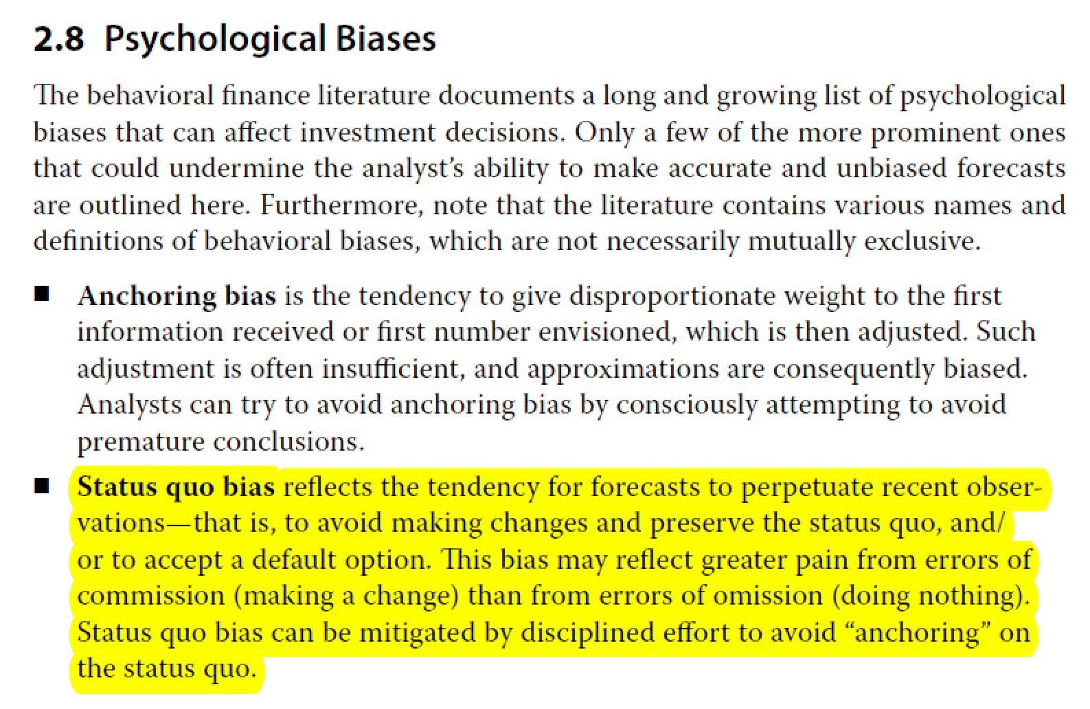 请问这个CME的status quo bias的定义在原版书哪里有提及到吗