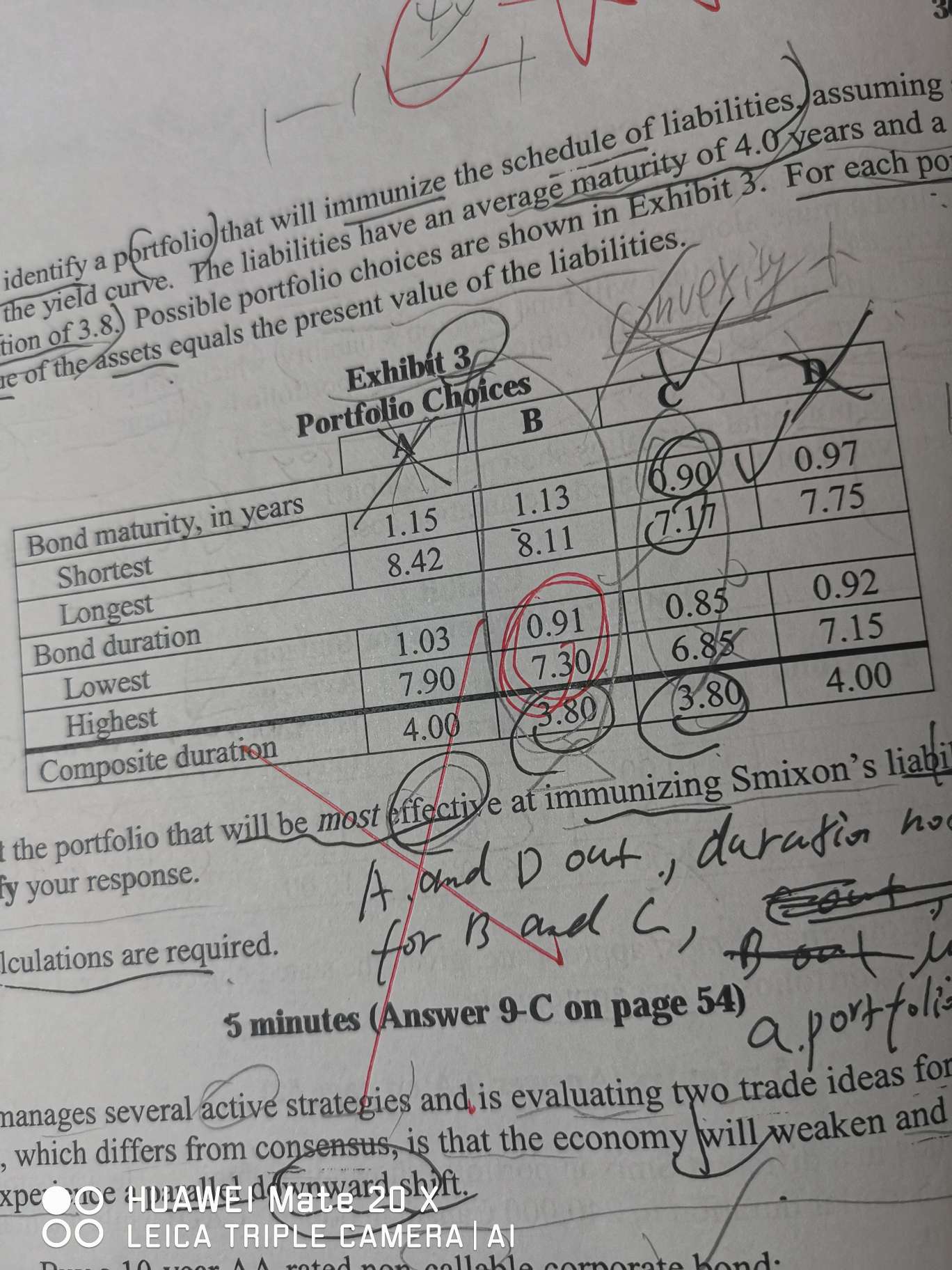 我们看到C选项中最大的债券久期是小于7的,也就代表了很有可能是无法匹配负债的。正常是需要最小的到期期限和久期都是小于负债期限,而最大的到期期限和久期都是大于负债期限的。