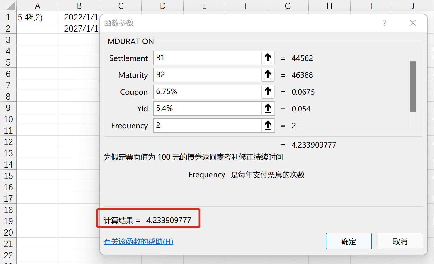 2. 这里使用公式直接计算麦考利久期(如图),相较于同学的每步计算存在四舍五入的问题,通常题目中会直接给出久期,并不需要计算。