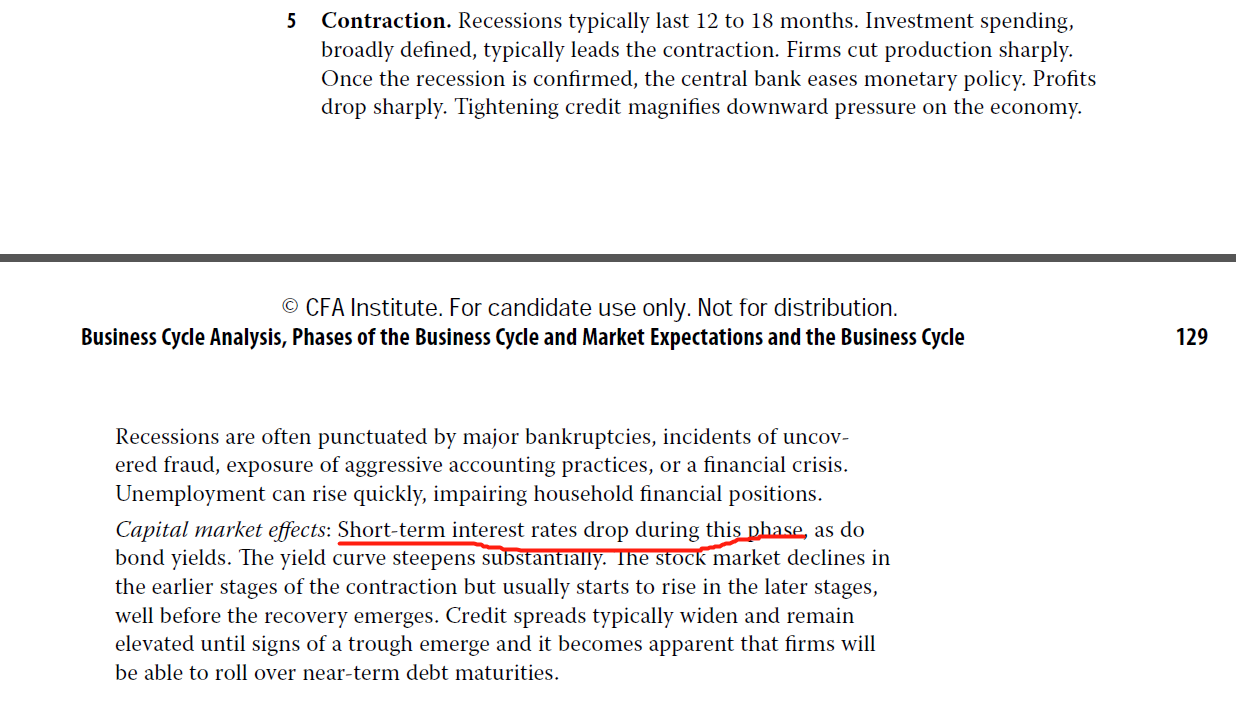 Mock 1第4题B题中的government bond yield 为什么是start to decline ,短期利率是上升的,债券的yield 应该也是上升的,债券的yield 应该在contraction 阶段开始下降的