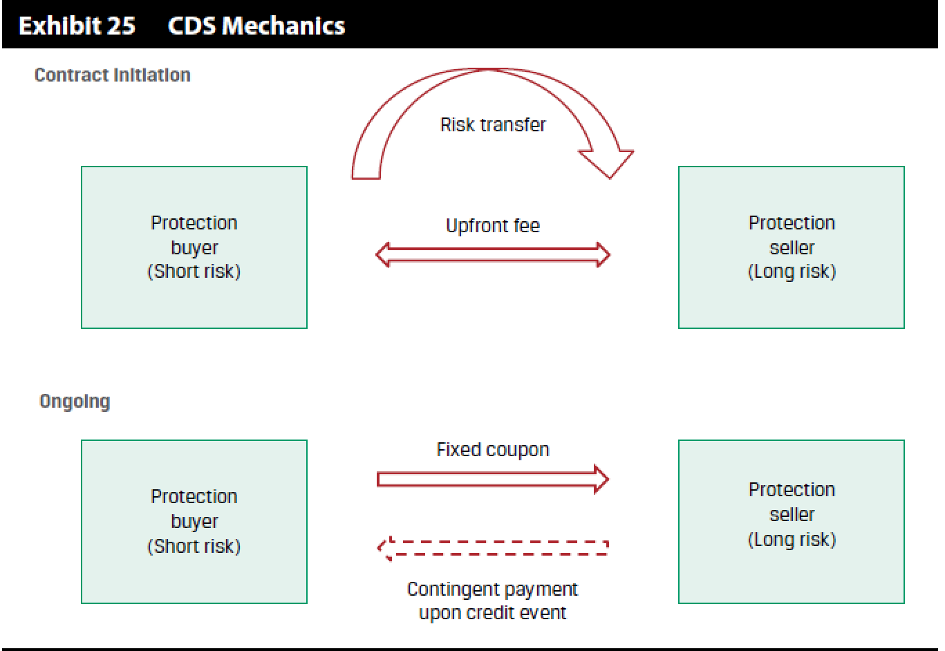 因此买保护会在利差扩大时获益,为Short CDS;而卖保护会在利差缩窄时获益,为Long CDS。
