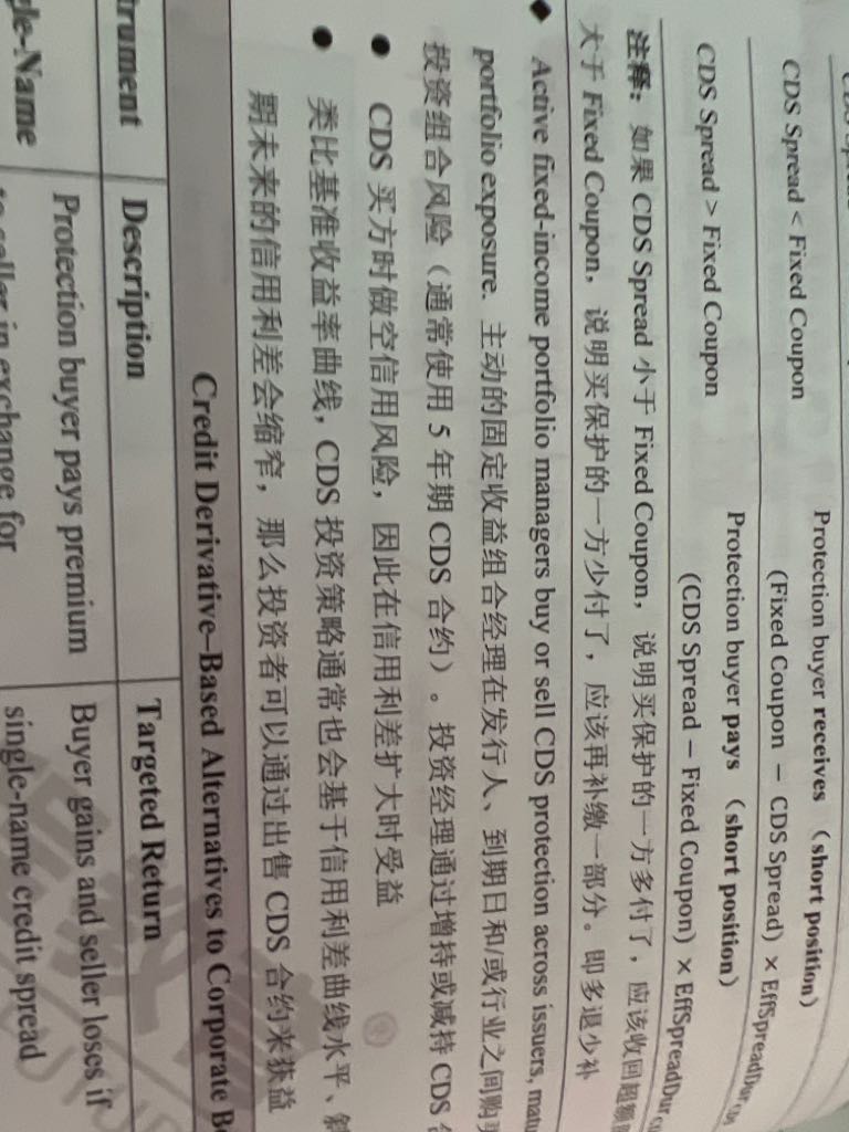 1. short risk=买保护=long CDS=spread扩大赚钱=pay coupon