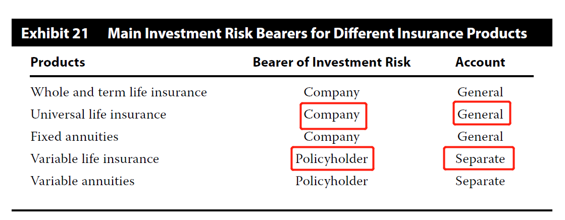 讲义77页 universal life 和 variable life policy 有什么区别呀 感觉都是policyholder可以去选择投资项目 为什么universal 就是insurer承担投资风险,variable是policyholder承担投资风险
