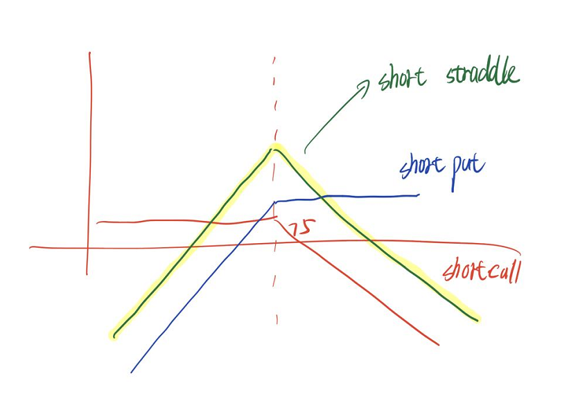 这个策略是short straddle,画出来应该是一个正三角。请您参见截图。