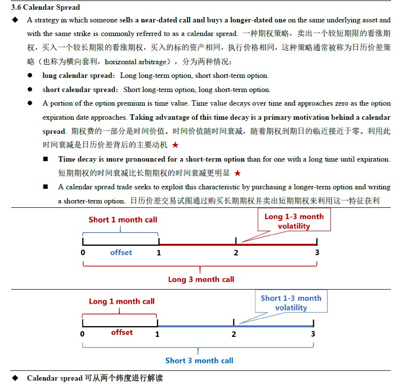 备注:无论从波动性角度还是方向性角度,Calendar spread都对短期和长期存在观点,因此也可以站在时间的角度进行解读