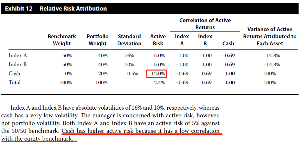 同学你好,这里需要区分两种风险,一种是total risk,一种是active risk。