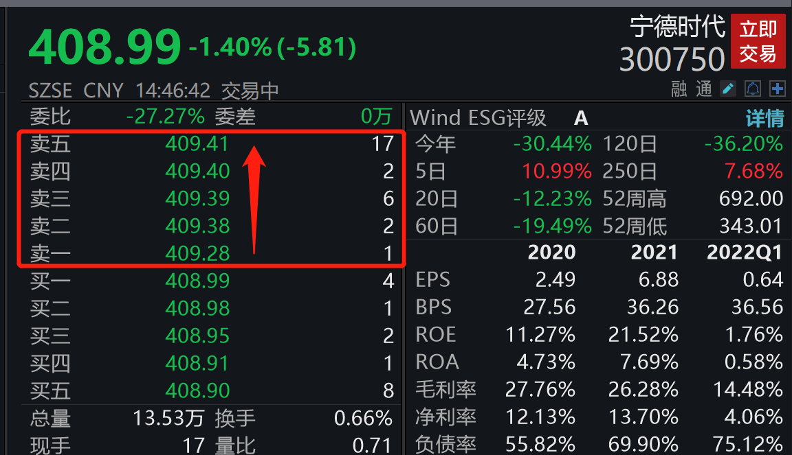 同学你好,可以参考如下股票盘口。因为交易都是价格优先的,因此买单的话会先从交易卖一,也就是当前卖单价格中最便宜的开始成交,如果这个价格的订单都成交完了,就会去卖二,那么成交价就会更高。如果你买入规模很大,那么把当前的成交价格越推越高。因为便宜的订单逐步被你成交完了,就会去成交价格更高的订单。