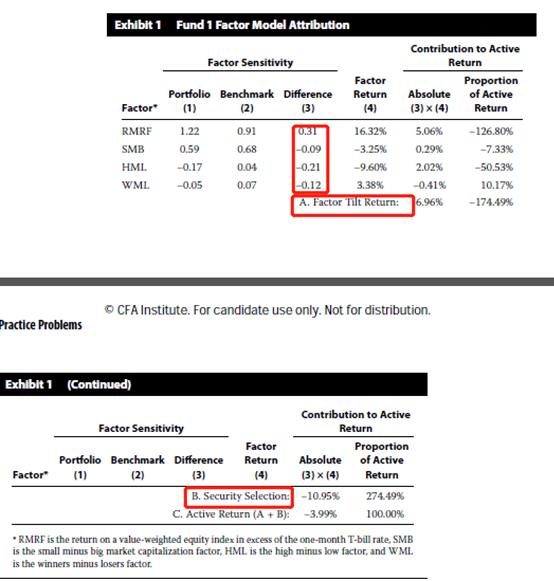 attribution effects:就是下面factor tilt return(体现allocation)和 security selection带来的active return。