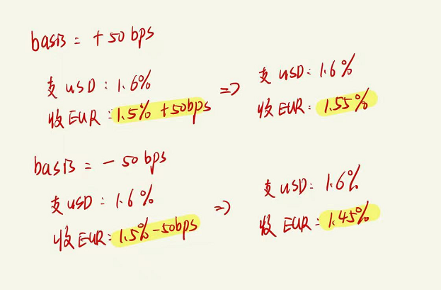 同理,如果basis本身是负的,您收baisis就会少赚一块basis,如果您支basis,就会少支一块basis。
