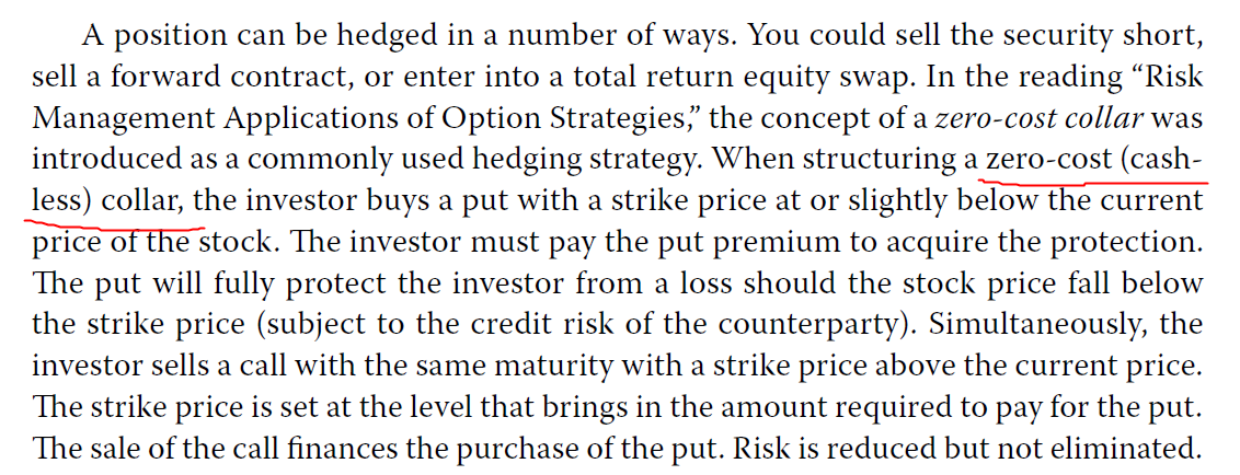 老师好 zero-cost collar 和 cashless collar有区别吗? 为什么不是 cost of put option= cost of call option? 歇息