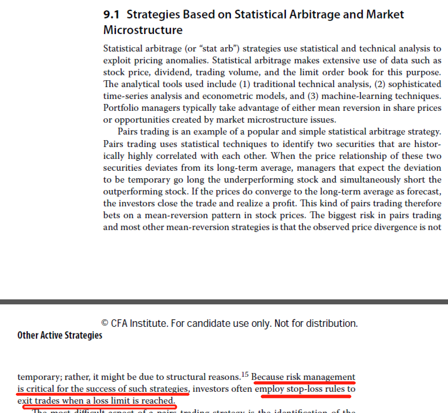 A. 确定合适的股票对,这个是实施策略的要点,但不是风控措施。合适的股票选好了,我们要控制的是防范未知的风险,万一股票的基本面现在变化了,股价没有发生mean reverting,那么我么要采取什么措施来风控呢?这个选项没说。