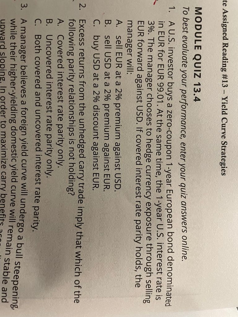 notes上quiz 13.4第一题,EUR的1年interest rate是1%,USD的一年rate是3%,基金经理要通过卖EUR来hedge。答案中A说sell EUR at 2% premium against USD,C说buy USD at a 2% discount against EUR。这两个不是一回事吗,为什么答案选C?