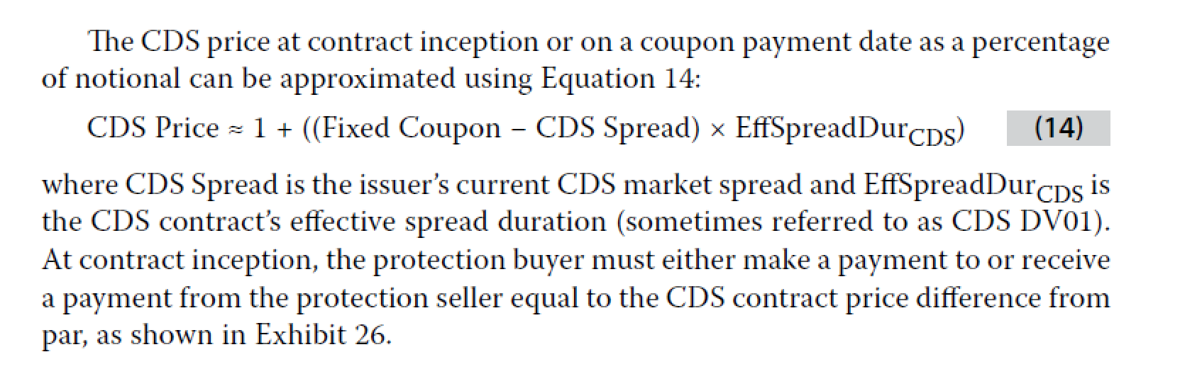 1. 因为实际上它是从名义本金1开始变动的,即CDS Price为报价,1为期初报价,随着利差的不同(CDS Spread),报价需要调整,利差更大,则报价更低,利差更小,则报价更高,最后乘以名义本金构成整体CDS价值。