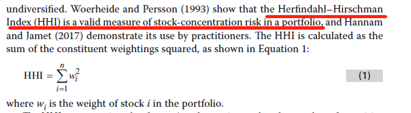 同学你好,HHI是专门用来计算股票集中度的,因此只需考虑股票在整体组合中的权重就可以了,不用考虑债券的权重。