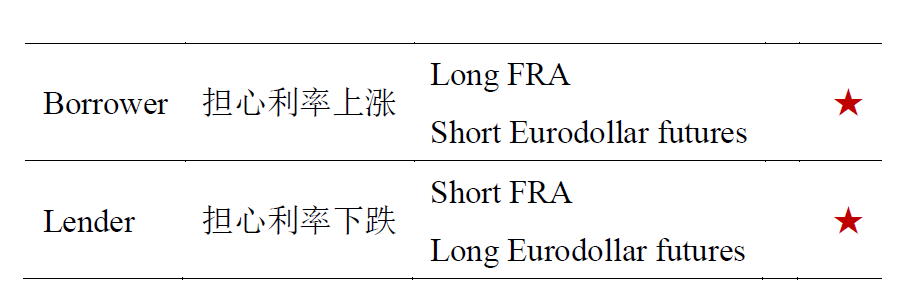 short eurodolalr futures是看跌价格,耻就是看涨利率,因此是borrower用于对冲的手段。这里要与FRA区分,FRA的标的资产是远期汇率,两者正好是相关的结论。最参见截图。