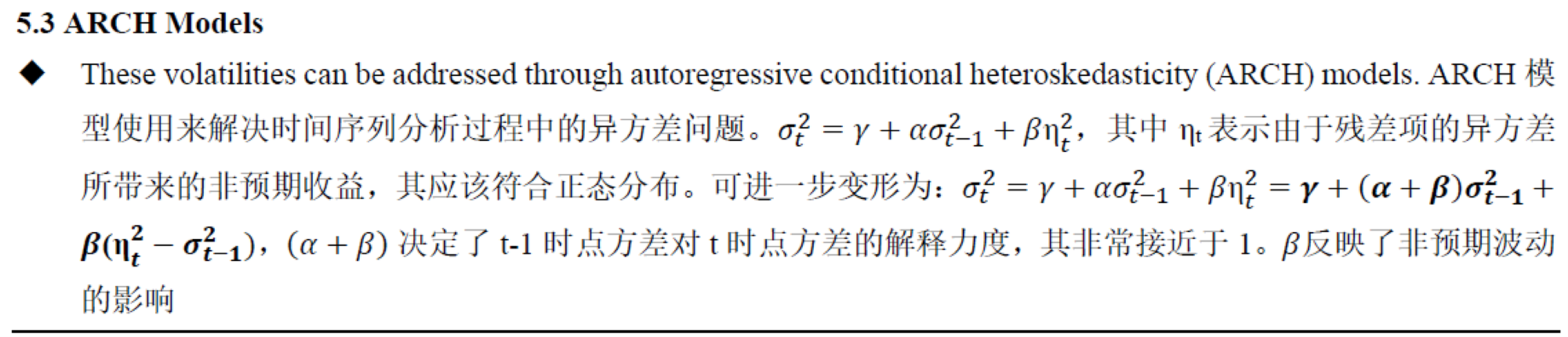 26:56 2021.12月份的二级课程里面没仔细讲过ARCH模型,只是在AR里面说了ARCH条件异方差这件事情。请老师详细解释一下ARCH模型和这个公式的推导过程。