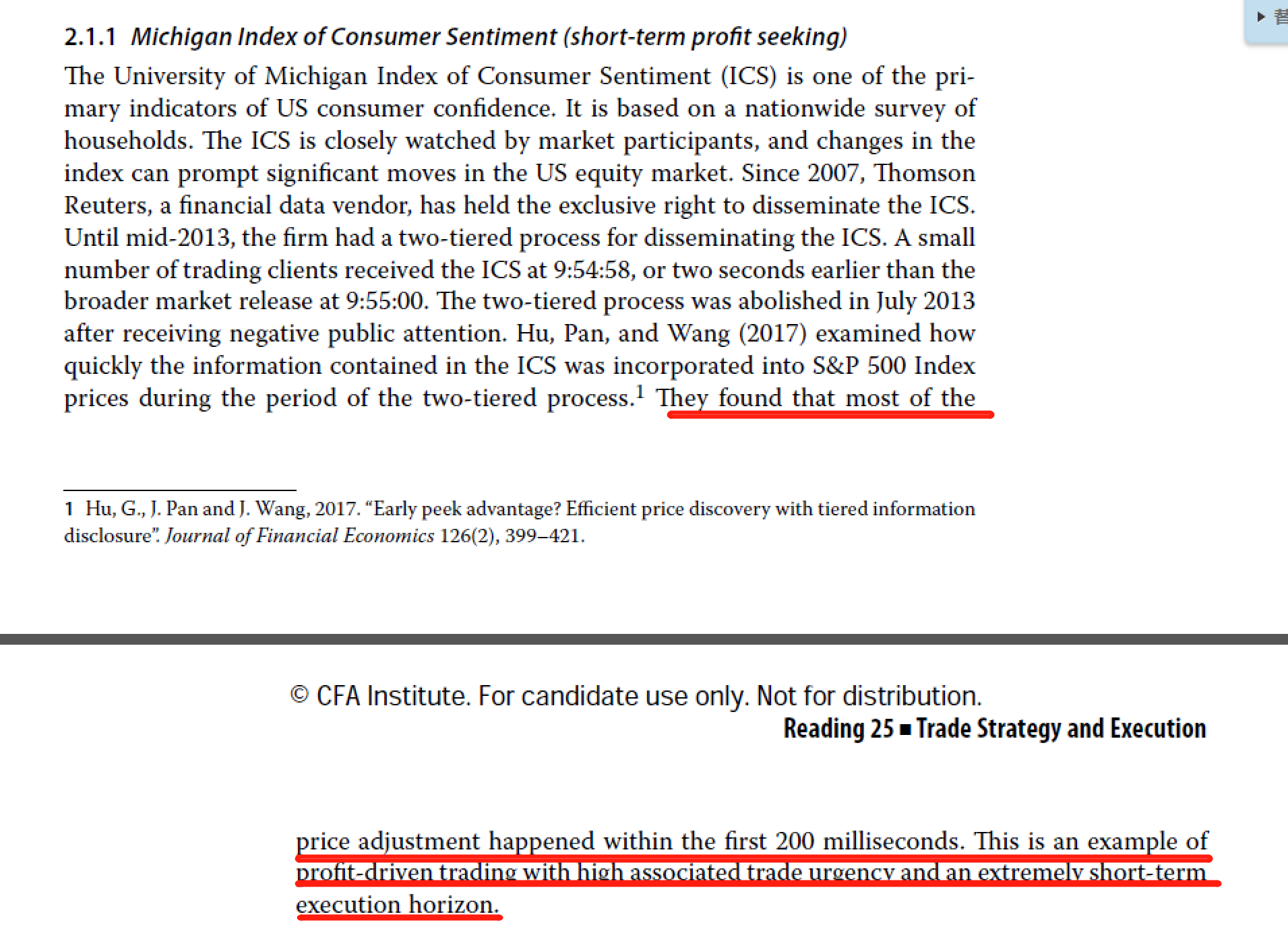 但这样的alpha消失的速度是很快的,有研究发现在200毫秒,也就是1/5秒内,股指就会反映消费者信心指数的变动,这就要求投资者有非常快的交易执行速度。因此trade urgency很高。