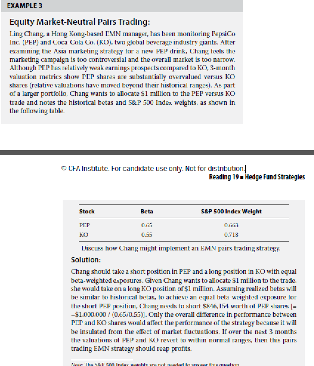 因为百事可乐现在相对可口可乐偏高估,因此可以做多可口可乐,做空百事可乐,同时调整他们的beta,使得多空beta整体为零。而组合获得就是alpha收益,即高估的股价未来会下跌(空头获益),低估的会上涨(多头获益)。