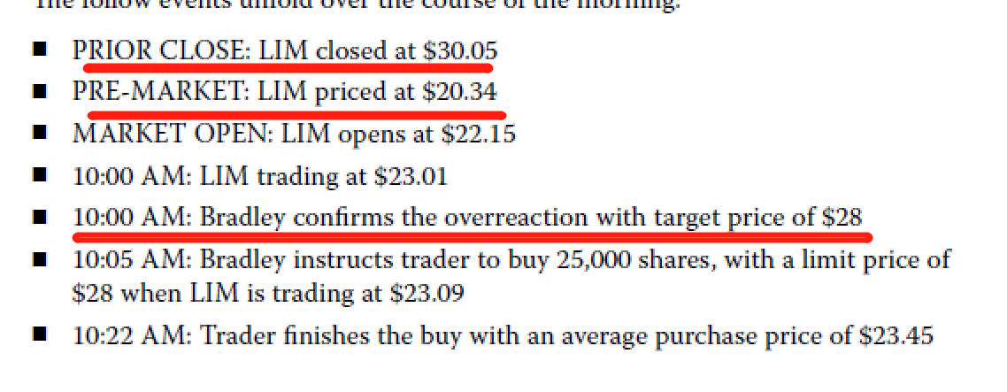 B在昨天确实认为LIM的fair value是28,但当时他并没有任何想要交易的想法。因为LIM昨天收盘还是30.05,那时还是高于fair value的。