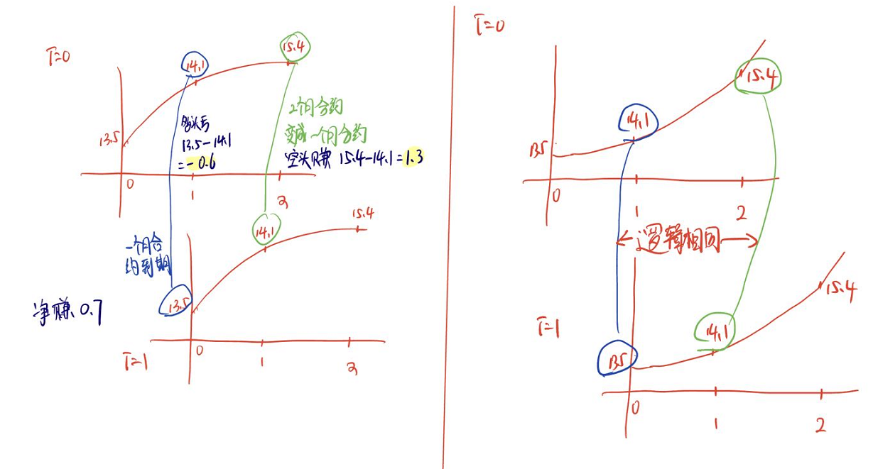 您可以参见截图的内容。这里的关键是曲线是升水的,而且和各点位上的值相关,与曲线是凹是凸无关的。