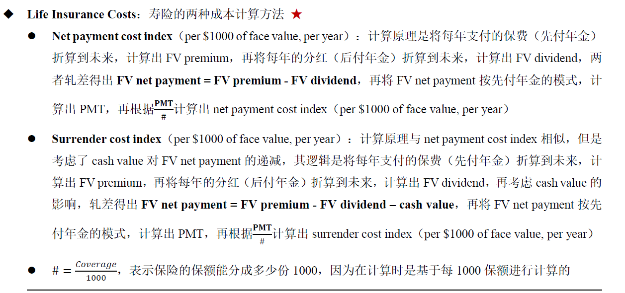 但我们最好还是折现到最后去计算,因为我们还有另一种方法叫Surrender cost index,这种方法是要考虑cash value的。这两种方法是相似的,差异就在于,一个要减去cash value,一个不用减去。但cash value是在最后FV的价值上减的,所以最好的做法,还是折现到未来去计算。