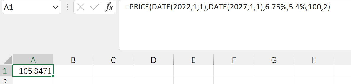 原版書reading 14 69頁,第2個問題,我用excel算的 =PRICE(2022-1-1,2027-1-1,6.75,5.4,100,2,0)得出來的答案是78這樣。我輸入的公式有什麽地方錯