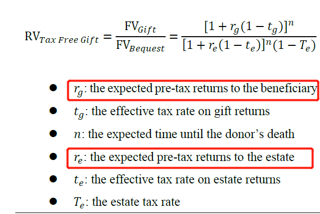gift是赠与人交税,bequest是受赠人交税,所以计算RV的分子用赠与人的税前收益,分母bequest用受赠人的税前收益率,可以这么理解吗?