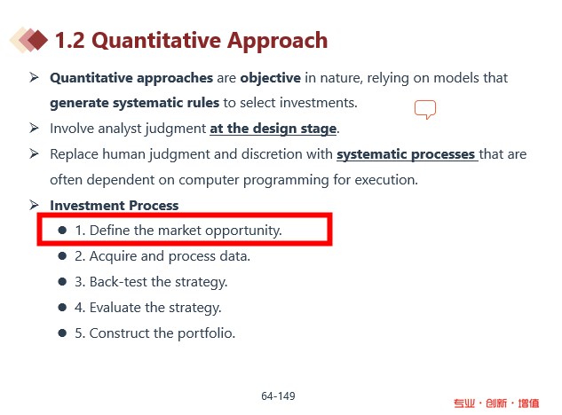 量化的第一步是寻找市场机会。但基金经理的经验和判断是归在fundamental中的。