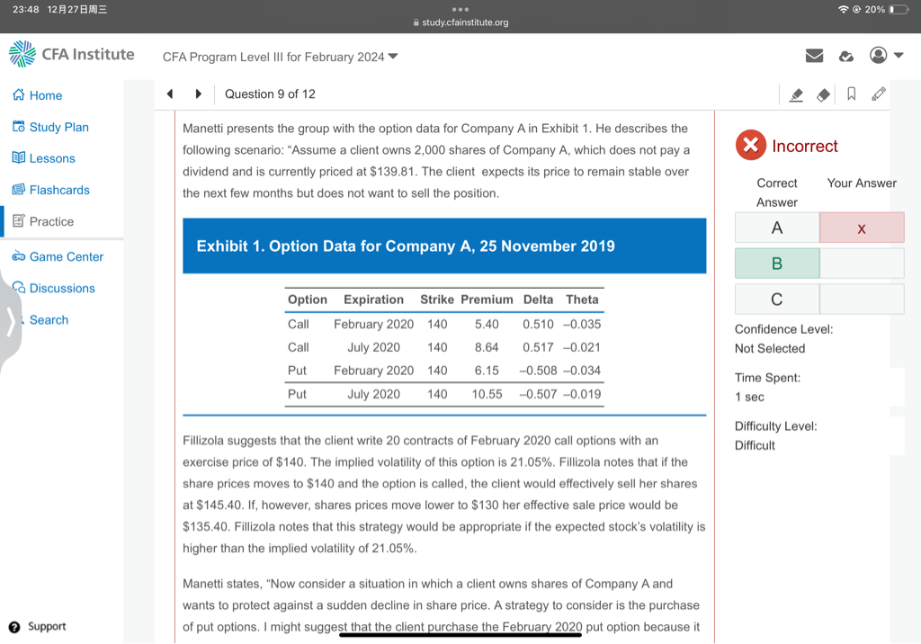 F卖出了20份 call contract(此题需要考虑contract,一份contract有100个option),所以总共卖出2000个option,detla=-2000*0.510=-1020