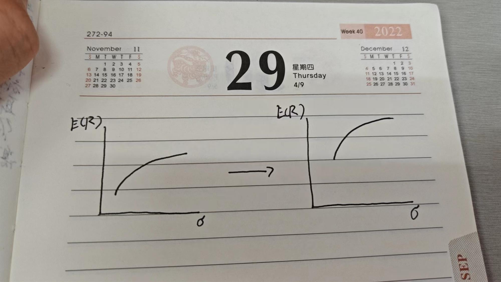 同学你好,就是整个有效前沿往上移动,就如图中所画的一样