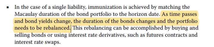 1. 如果A和L资产端都是变动△r,而且A和L的duration都一样,那么资产端变动△P/P=-MD*△r,负债端也变动△P/P=-MD*△r,影响是一样的。但是第一问,随着r变化,发生不匹配,是因为利率变动导致duration发生了改变,此时duration asset≠duration liability,所以要重新调整。