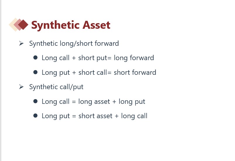 老师,第二个策略说的是put on stock,call on stock…不应该是这样么…合成option就是call、put采用平价公式看吧…