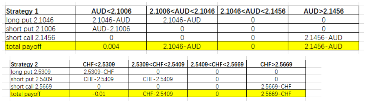 策略2认为CHF将来会升值,但是这个策略,CHF升值到2.5642(分析师观点),payoff是0,不亏不赚,也没有很好的利用 market view。