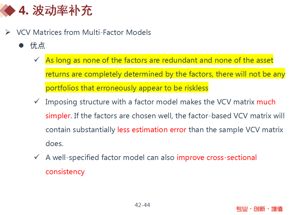 同学你好,statement 3说的是在使用多因子VCV去衡量投资组合的方差和协方差时,如果没有任何多余的因子(投资收益率会受到所有选中的因子的影响,不存在哪个风险因子对组合的收益率没有解释力度),而且没有一个资产收益率是完全仅由选中的因子所决定(存在specific risk,也就是因子所没有解释到的回报),那么就不会有任何投资组合看起来是无风险的。这句话是对的,参照下图总结,他是factor-based VCV的优点。